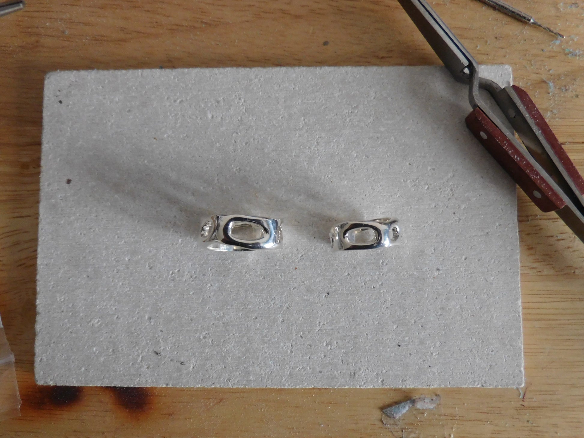 To clean your silver pieces use warm soapy water and a soft brush and pat dry. For extra shine use a silver polishing cloth.